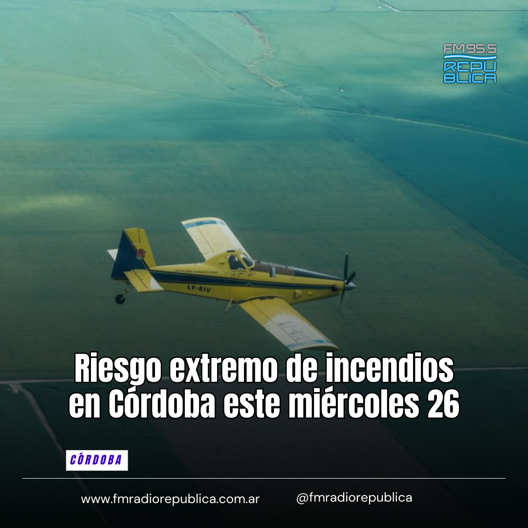 Riesgo extremo de incendios en Córdoba este miércoles 26
