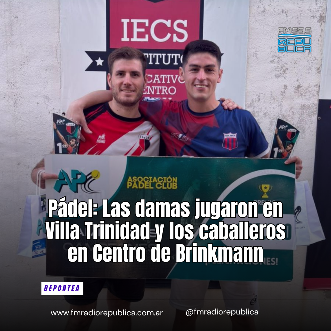 30/09/2025 - El fin de semana hubo pádel de la APC en la región y se jugó la 8° fecha. Las damas jugaron la categoría Impar en Villa Trinidad y los caballeros jugaron la categoría Par en Centro Social de Brinkmann. La Asociación Pádel Club agradece la participación de todos/as sus deportistas afiliados/as. Aquí en la nota todos los resultados: tanto en damas como en caballeros.