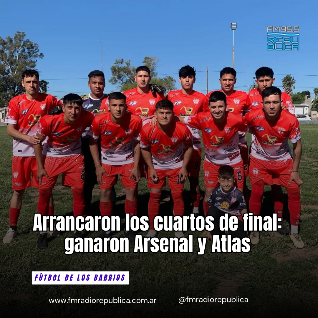 29/09/2025 - El sábado comenzaron a jugarse los cuartos de final del Fútbol de los Barrios, tanto en Primera como en Reserva del torneo que organiza la Liga Regional de Fútbol. Hay que destacar que son dos partidos y en caso de igualdad en puntos habrá penales, los ganadores pasarán a semifinales. En Primera Arsenal de visitante le ganó a San Jorge y Atlas venció a Las Chapas en Morteros. Los otros partidos fueron empates. En Reserva el único que ganó fue Sucre.