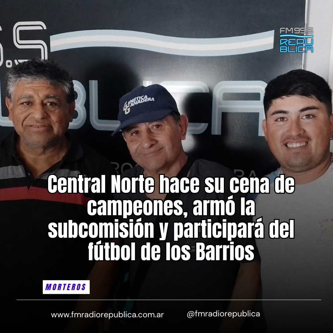 10/03/2026 - Central Norte fue campeón del Torneo Sub 21 que organizó la Liga Independiente. Este viernes a las 21:30 en el SUM de la Sociedad Italiana realizará la Cena de Campeones. Sale $15.000 sin bebida y niños de 5 a 12 años $8000. Los interesados pueden encargar con miembros de la subcomisión que está integrada por 20 personas. Además, su entrenador Miguel Gaitán comentó que van a participar del Fútbol de los Barrios con la base de jugadores que viene jugando más algunos refuerzos.