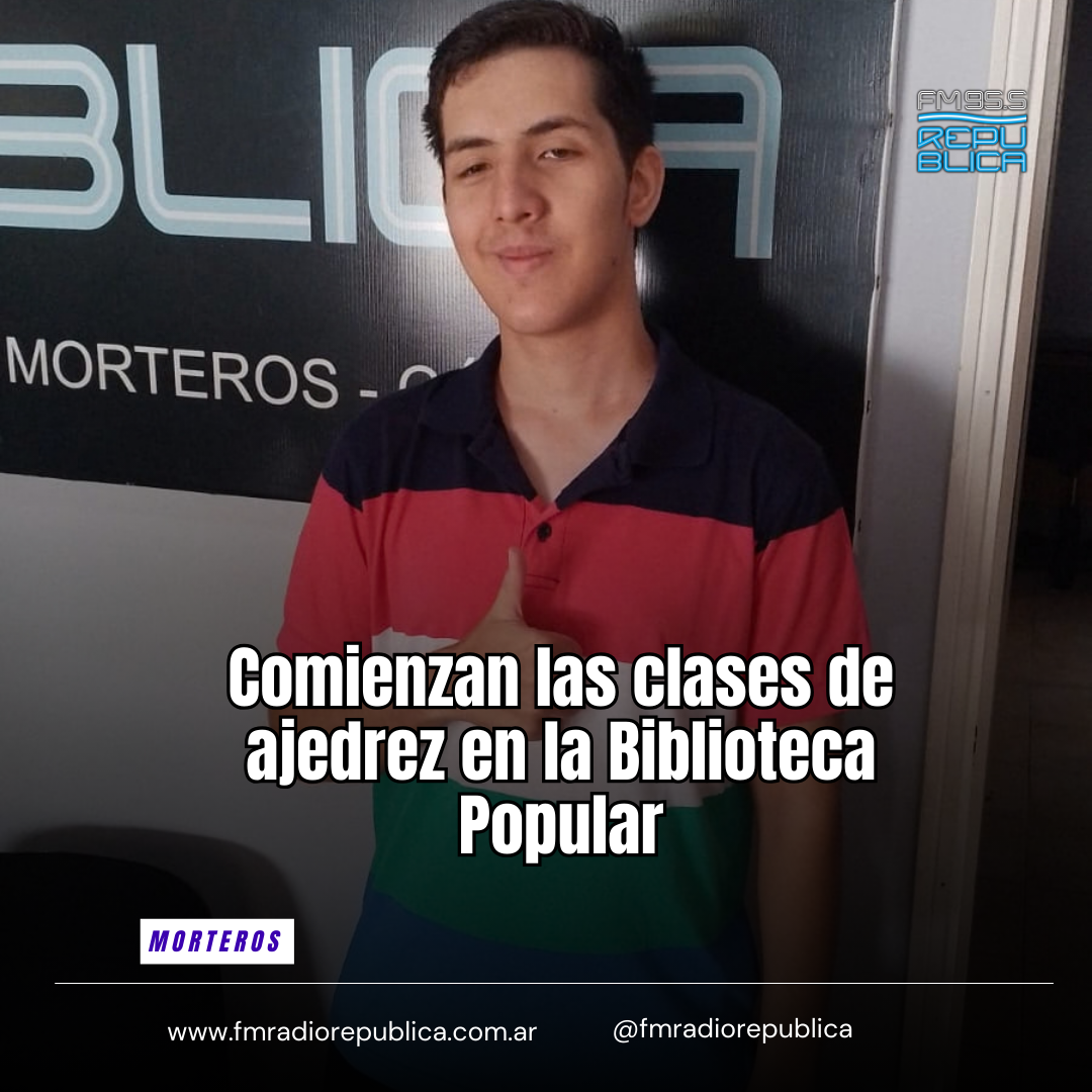 10/03/2026 - La Biblioteca Popular Cultura y Progreso de Morteros suma una nueva disciplina, el ajedrez. Las clases estarán a cargo del profesor Santiago Gschwind. Los días y horarios serán desde este viernes de 17:00 a 18:00 y los sábados de 9:00 a 12:00 para niños de 7 a 13 años de categoría principiante. El cupo es de 10 alumnos y se pueden anotar al 3562 556326 o en la Biblioteca.