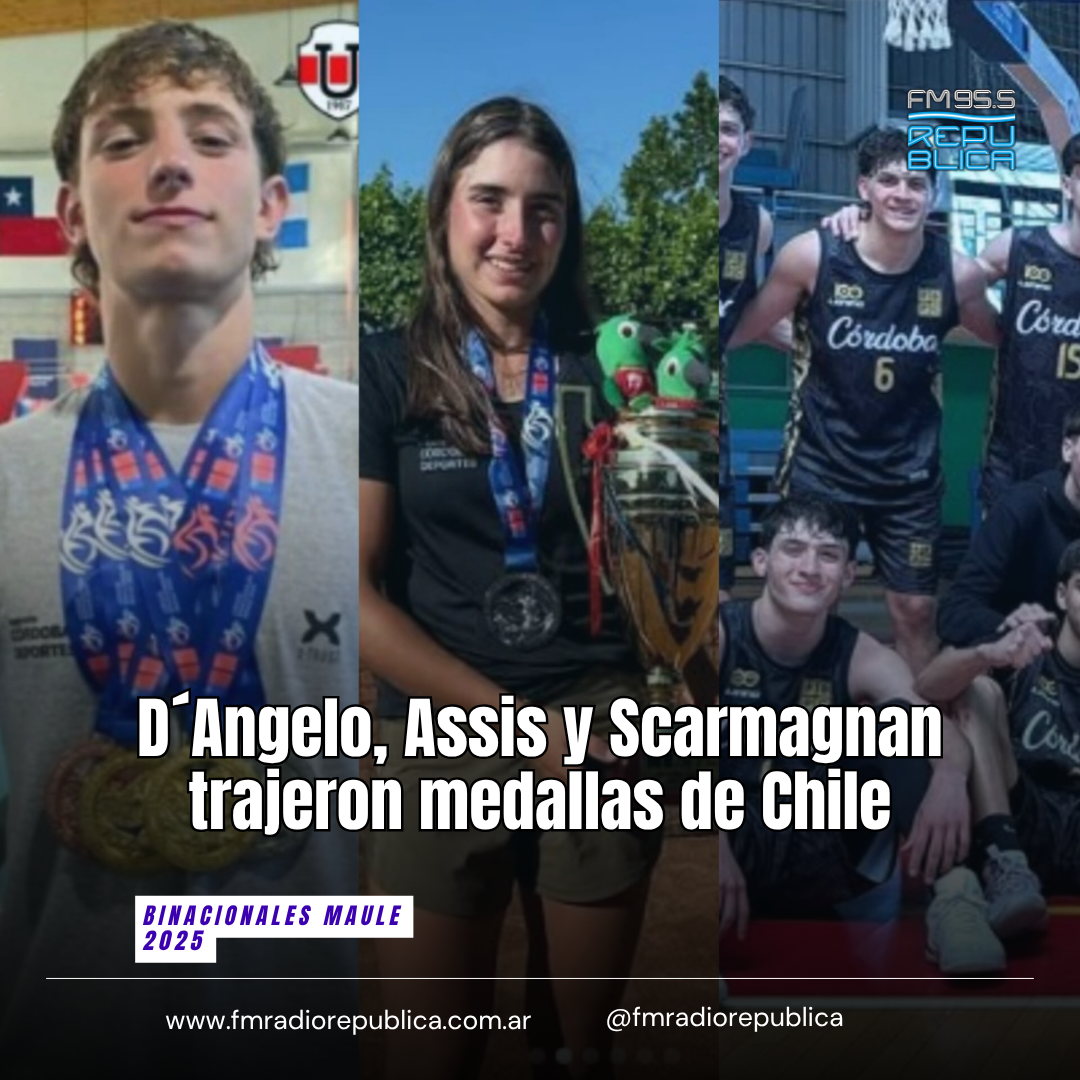 18/11/2025 - Los morterenses participaron de los Juegos Binacionales Maule 2025 en Chile representando a la Provincia de Córdoba. En Natación, Luca D´Angelo consiguió 2 medallas de oro, 1 de plata y 1 de bronce. En Tenis, Angelina Assis cosechó la medalla de plata y en Básquet, Mateo Scarmagnan se colgó la medalla de Bronce. Córdoba finalizó segunda en el medallero.