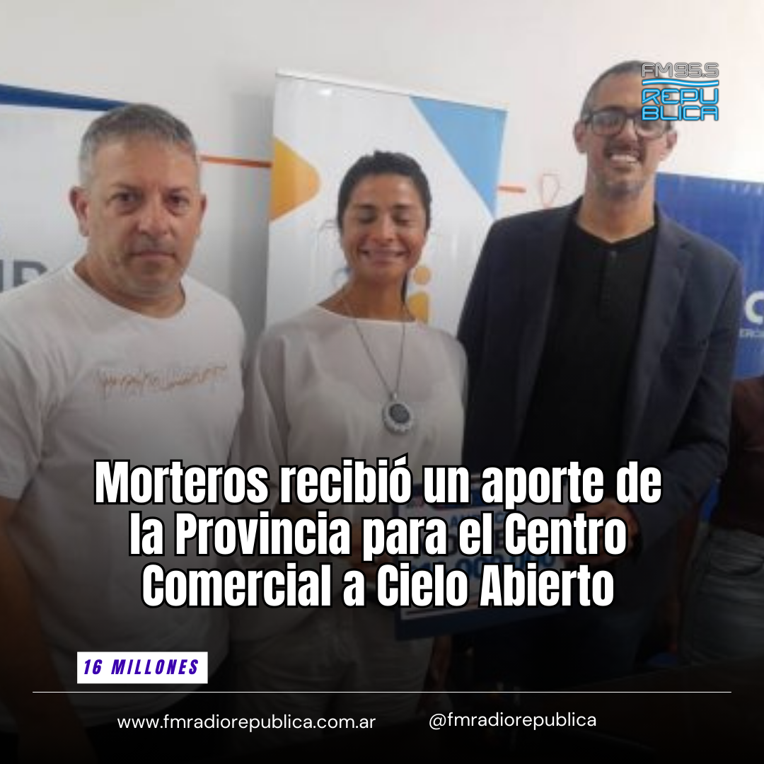 13/12/2025 - La Municipalidad de Morteros recibió un aporte económico otorgado por la Secretaría de Comercio de la Provincia de Córdoba, tras la aprobación de un proyecto urbanístico presentado en el marco del Programa Centros Comerciales a Cielo Abierto (CCCA). Los fondos serán destinados a realizar mejoras en un sector comercial de la ciudad, con el objetivo de impulsar el desarrollo urbano, fortalecer la actividad económica y potenciar el movimiento comercial de la zona.
