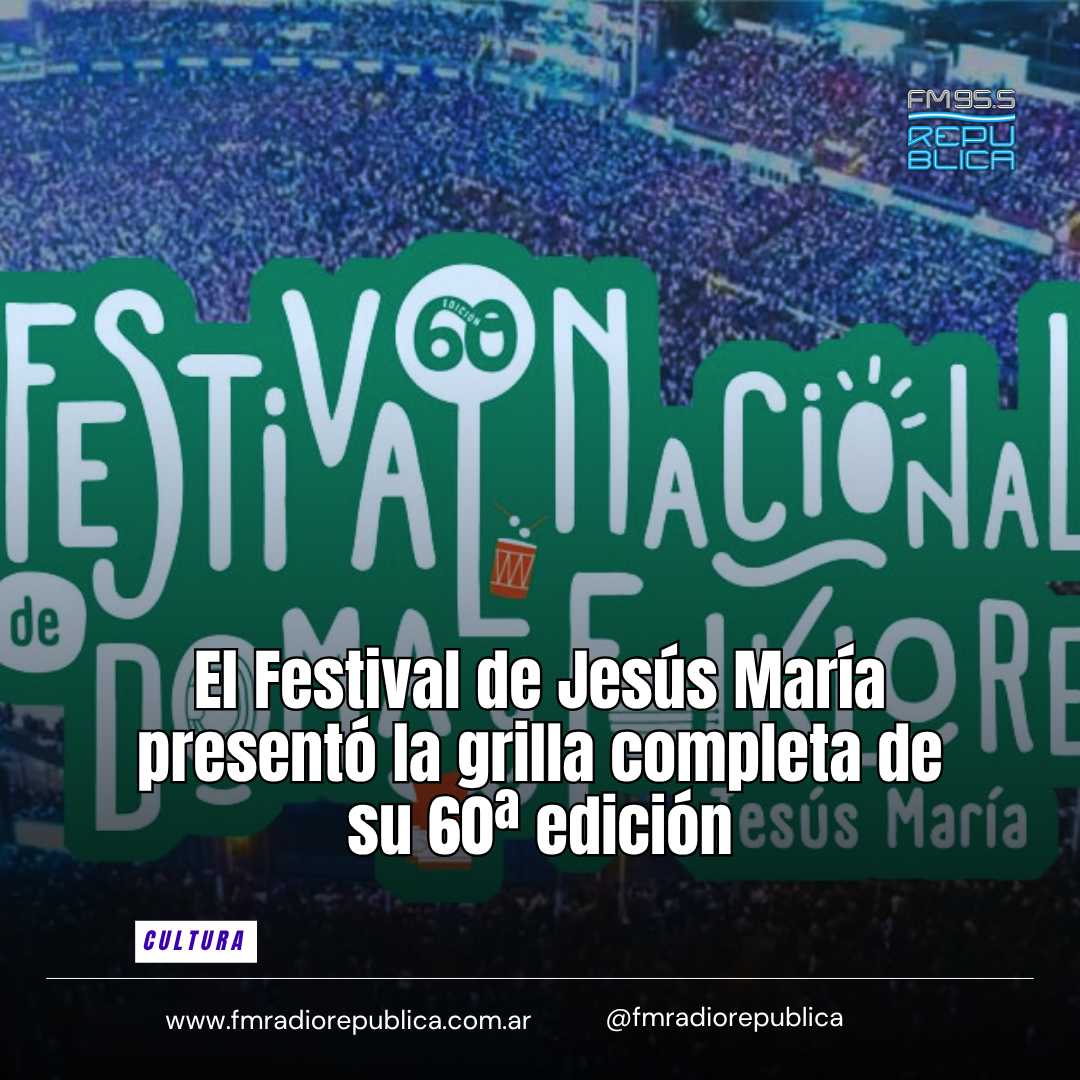 08/10/2025 - Este miércoles quedó confirmada la programación del Festival de Doma y Folklore, que se realizará del 8 al 18 de enero de 2026. Desde este viernes se podrán comprar los tickets. Córdoba ya empieza a palpitar una nueva edición del Festival Nacional de Doma y Folklore de Jesús María, que en 2026 celebrará sus 60 años de historia. El tradicional evento, símbolo de la cultura argentina, se desarrollará entre el 8 y el 18 de enero y volverá a contar con la transmisión en vivo de Canal 10 y SRT Media.