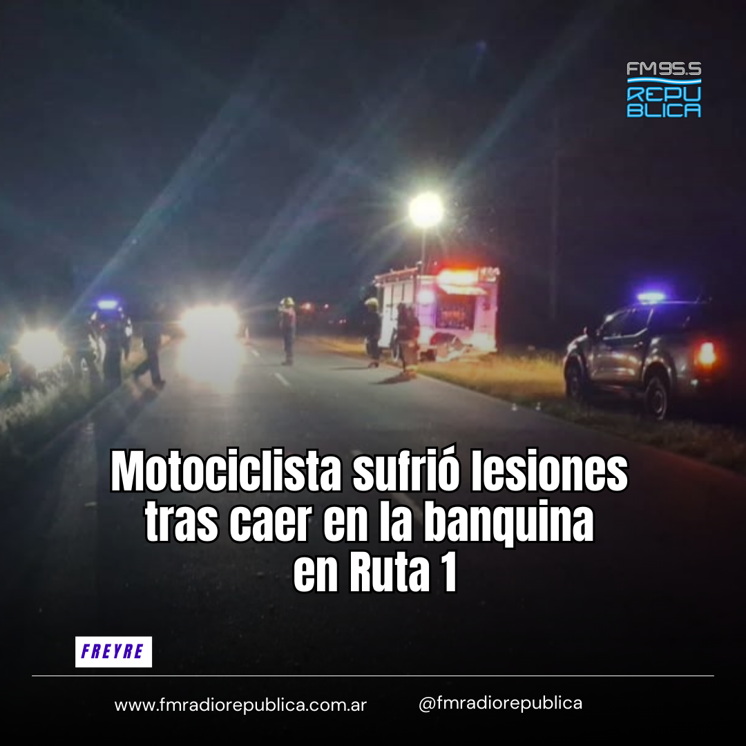 24/12/2025 - En la noche del martes (22:30 hs) una joven de 22 años resultó herida tras despistar en su motocicleta para evitar un accidente en el kilómetro 71 de la Ruta Provincial N° 1. Una mujer de 22 años relató que una camioneta blanca realizó un sobrepaso indebido, obligándola a tirarse a la banquina, perdiendo la estabilidad del rodado cayendo al suelo. Fue trasladada al Hospital Iturraspe donde le diagnosticaron lesiones leves.