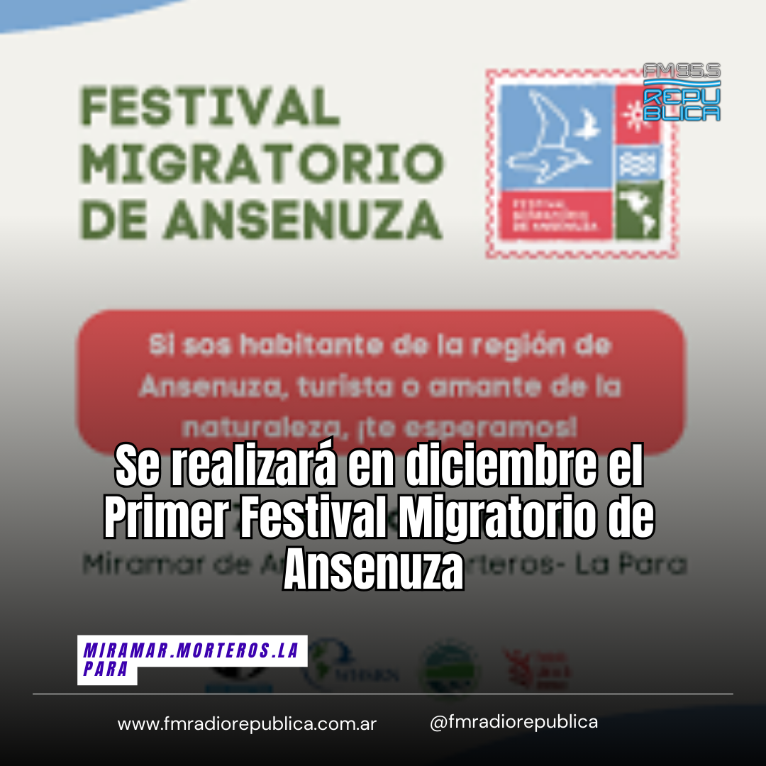 21/11/2025 - Organizado por Aves Argentinas, WHSRN (Red Hemisférica de Reservas para Aves Playeras), Manomet y Fundación Lideres de Ansenuza, se llevara a cabo por primera vez en la región, el Festival Migratorio de Ansenuza que se desarrollará los días 6, 7 y 8 de diciembre en Miramar de Ansenuza, Morteros y La Para. Martina Blangetti, miembro de la Fundación Líderes de Ansenuza, una de las organizadoras del evento visitó Radio República y amplió detalles del festival, los objetivos y su importancia para la región.