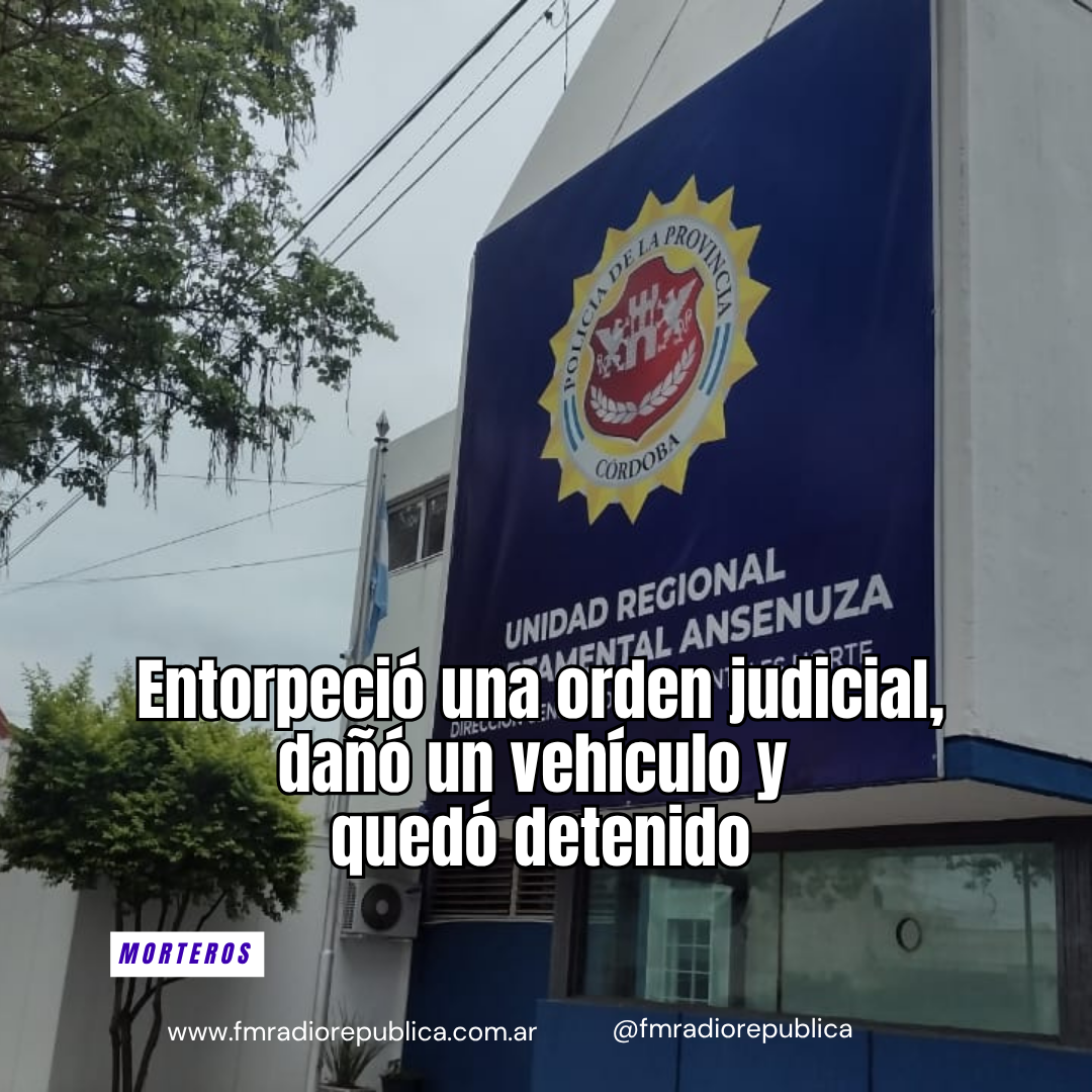 09/10/2025 - En la mañana del miércoles, personal de la Comisaria de Morteros, junto a la División de Investigaciones prestaron colaboración a la Oficial de Justicia para cumplimentar un allanamiento en un domicilio de calle Uruguay la 300. Constituidos en el lugar entrevistaron al propietario, un hombre de 46 años de edad que al ser notificado de la presencia del personal interviniente, comenzó a desafiar, insultar y amenazar a los uniformados, provocando daños a su automóvil Mercedes Benz, que luego fue secuestrado. El hombre quedó detenido por entorpecer el procedimiento judicial.