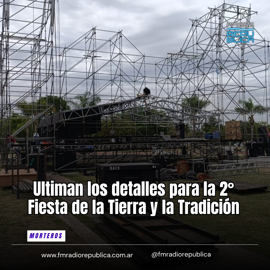 06/11/2025 - Desde hace unos días se monta sobre el parque central de la ciudad el imponente escenario que dará el marco a la 2° Fiesta de la Tierra y la Tradición, que se desarrollará desde este viernes hasta el domingo. Luz Laina, directora del Centro Cultural Municipal, en plena tarea organizativa admitió que “es un escenario imponente, realmente hermoso. Estamos a full con todo y sabemos que el clima va a acompañarnos el fin de semana”. Aclaró que “si bien el escenario es de Córdoba todo lo que es luces y sonido está a cargo de proveedores locales en esta oportunidad, asi que lo están manejando todo a través de nuestros técnicos locales”.