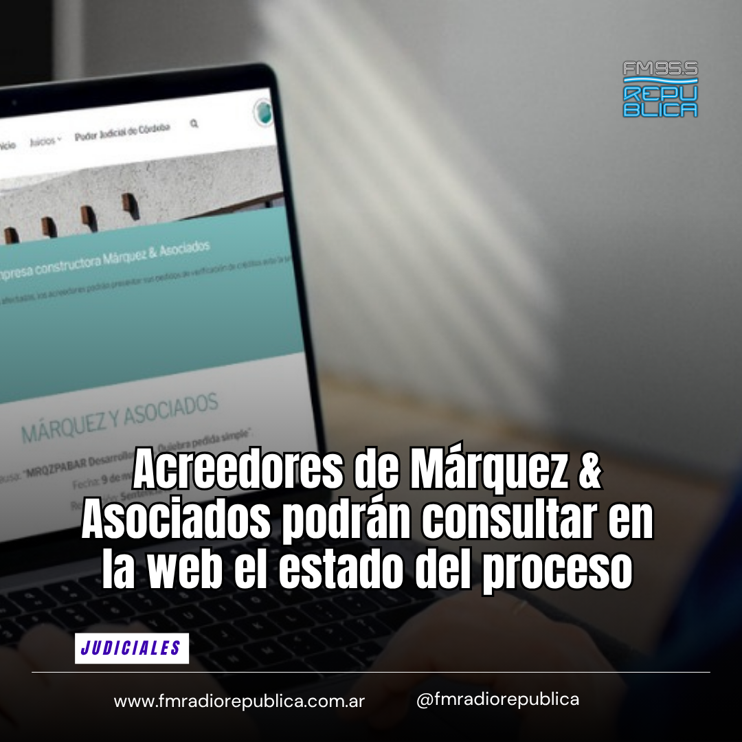 08/10/2025 - El Poder Judicial de Córdoba incorporó al portal web “Grandes Concursos y Quiebras” la información relevante de la quiebra de la empresa constructora Márquez & Asociados. Acreedores, proveedores y otras personas interesadas en el proceso podrán consultar en dicha plataforma resoluciones judiciales y toda actuación relevante que pueda afectarlos. Guía para aclarar inquietudes Con el objetivo de brindar transparencia y orientación a los interesados, la página oficial de la quiebra (ver vínculos relacionados) puso a disposición una sección denominada “Preguntas frecuentes” que permite despejar las principales dudas sobre el proceso.