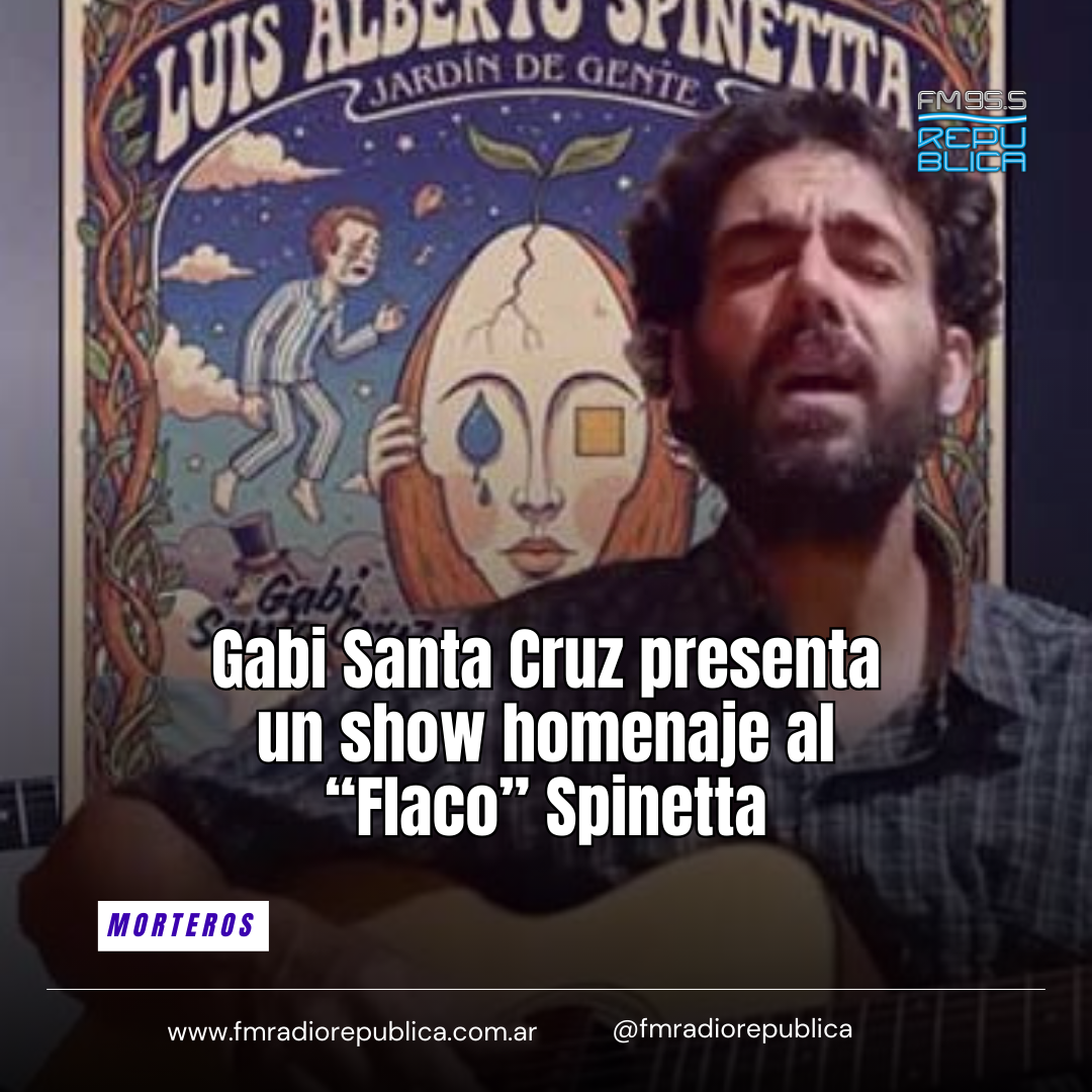 21/01/2026 - Este viernes 23 de enero a las 21 hs, en el Espacio Libertador, el artista morterense Gabi Santa Cruz realizará un homenaje a Luis Alberto Spinetta, celebrando el Día Nacional del Músico. “Jardín de gente” se denomina el espectáculo que presentará Gabi Santa Cruz con un repertorio íntegramente dedicado al nacimiento del músico, cantante, poeta, escritor y compositor considerado uno del más importante del mundo de habla hispana.