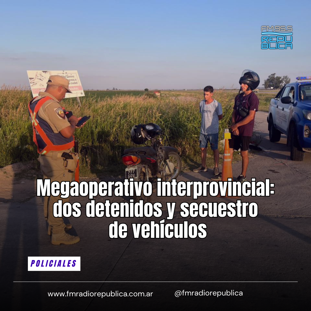 24/01/2026 - Se trató de un despliegue de seguridad de carácter interprovincial con el objetivo de blindar la zona limítrofe entre las provincias de Córdoba y Santa Fe. El viernes se llevó a cabo un megaoperativo interfuerzas que terminó con la aprehensión de dos personas con pedidos de detención judiciales, secuestros de vehículos y múltiples controles en San Francisco y localidades de la región como Frontera y Josefina, en un despliegue orientado a reforzar la seguridad en el límite entre Córdoba y Santa Fe.