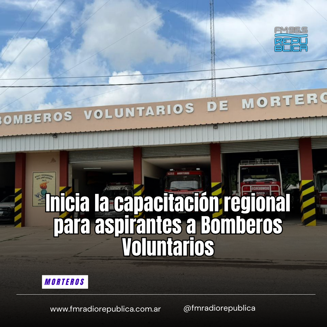 03/03/2026 - La Asociación de Bomberos Voluntarios de Morteros informa que este fin de semana, 7 y 8 de marzo, se realizará el primer encuentro de capacitación para aspirantes a Bomberos de Morteros, Brinkmann, Porteña y Colonia Valtelina. Tras la reciente reunión de la Escuela Regional Nº 1 de Bomberos Voluntarios, se aprobó que el cuartel de Morteros funcione como anexo formativo regional durante el ciclo 2026–2027, fortaleciendo la formación de nuevos integrantes en la región.