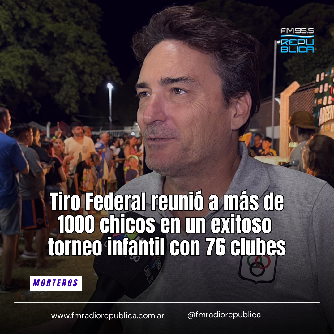 03/03/2026 - Con total éxito se desarrolló de viernes a domingo el torneo de fútbol infantil El Argentinito de Tiro Federal con más de 1000 chicos y 76 clubes. El presidente del club, Luciano Monetti, habló con Radio República donde aseguró que el balance es sumamente positivo. “Uno sabe que cuando suspende un evento después la reprogramación no siempre es fácil”, dijo Monetti marcando no obstante que “nos llenó de satisfacción que el 98% de los equipos confirmaron su presencia y si bien algunos por otro motivo no pudieron venir, se sumaron otros equipos y llegamos a la cantidad que teníamos inicialmente”.