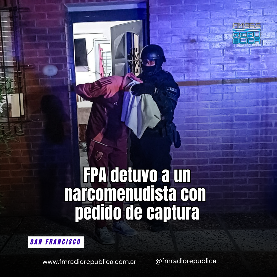 19/09/2025 - En una investigación dirigida por el Ministerio Público Fiscal, investigadores de la Fuerza Policial Antinarcotráfico detuvieron a una narcomenudista mayor de edad con pedido de captura en la ciudad de San Francisco. El operativo tuvo lugar en una vivienda ubicada sobre calle Almafuerte al 400 de barrio Roca. En el lugar se detuvo a un hombre de 26 años y se incautó $215.000 y elementos de interés para la causa. Cabe destacar que el narcomenudista aprehendido era integrante de una banda narco que comercializaba drogas en la ciudades de San Francisco, Alicia y Las Varillas.