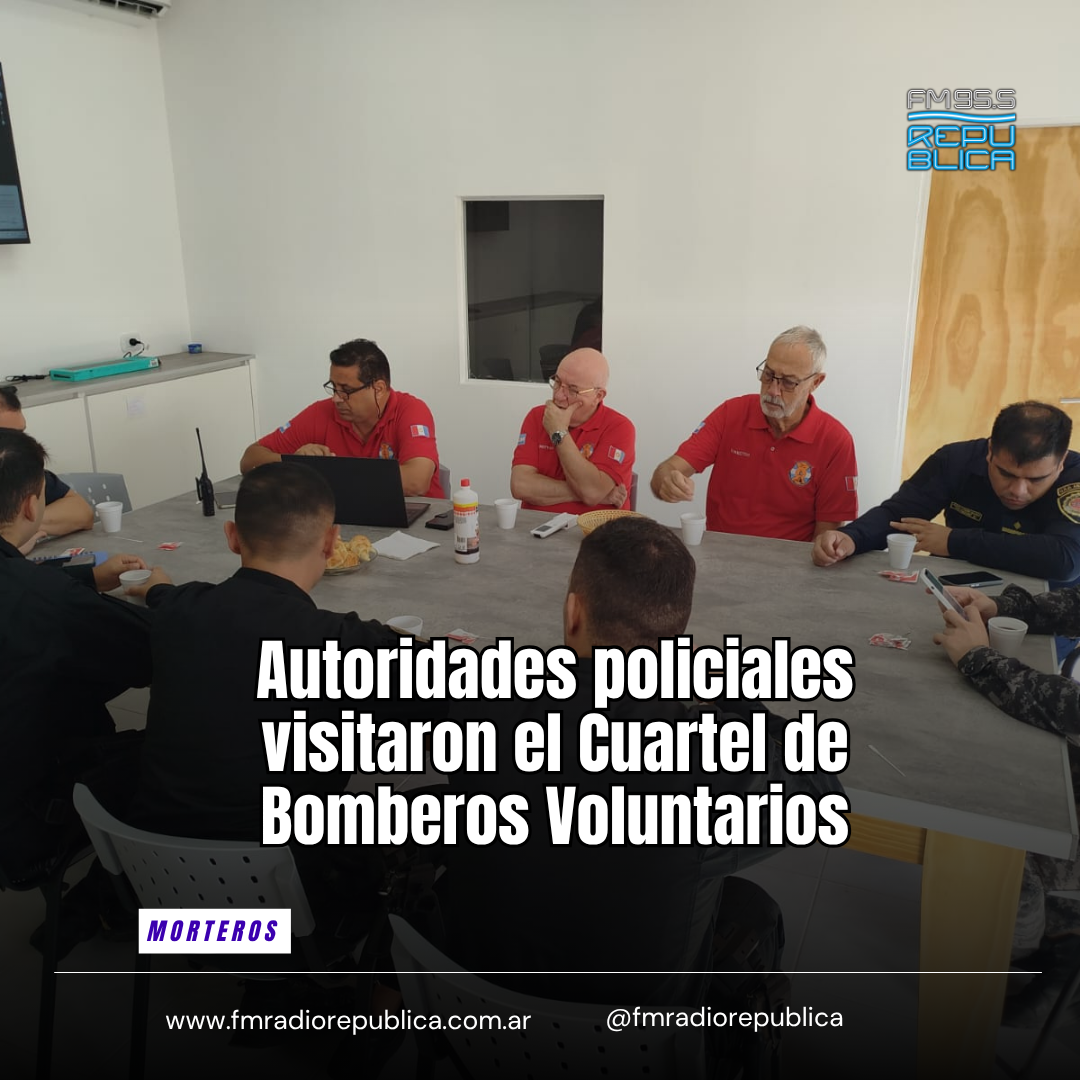 16/04/2026 - En la jornada del jueves, autoridades de la policía local realizaron una visita al Cuartel de Bomberos Voluntarios de Morteros. La delegación estuvo encabezada por el Comisario Carrizo Emanuel, el Subcomisario Bulassio Franco y el Oficial Ayudante Maidana Emanuel. También participaron el Oficial Subinspector Lescano José Rodrigo, el Sargento Molina Damián y el Cabo 1° Quiroga Mariano del SEOM.
