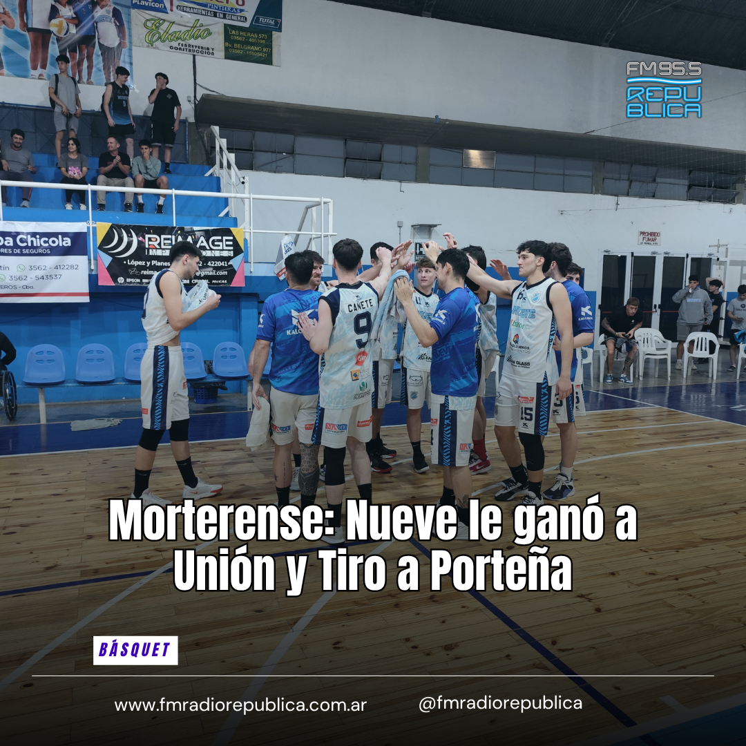 22/10/2025 - Este martes se jugaron tres partidos de la 13ª fecha del Torneo Clausura de la Morterense de Básquet. En el Cerutti, Nueve derrotó a Unión de San Guillermo 86 a 66. Rodrigo Fillol con 21 puntos fue el goleador del local y Alejo Méndez con 23 el máximo anotador de Unión y del partido. En Porteña, Tiro Federal consiguió un importante triunfo al derrotar al “Huevero” 74 a 69, Agustín Busso anotó 21 puntos en el equipo de Pestuggia y Rodrigo Cerdosino 22 en el local. En Villa Trinidad, Centro derrotó a Libertad 82 a 80. El pasado jueves, Sportivo Suardi le había ganado 110 a 94 a San Jorge.