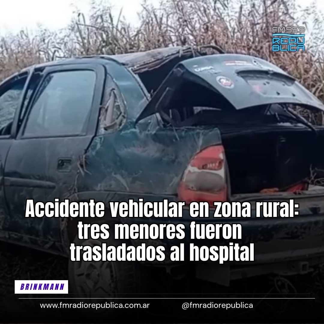 24/04/2026 - En la mañana de este viernes, pasadas las 7:30 horas, se registró un accidente vehicular en la zona rural de Brinkmann, en cercanías del paraje La Flor. El hecho involucró a un vehículo que trasladaba alumnos hacia un establecimiento educativo. Tras recibir el llamado de emergencia, dos dotaciones de bomberos se dirigieron rápidamente al lugar. Al arribar, los efectivos constataron que el conductor había logrado salir del rodado por sus propios medios, al igual que tres menores que viajaban como acompañantes.