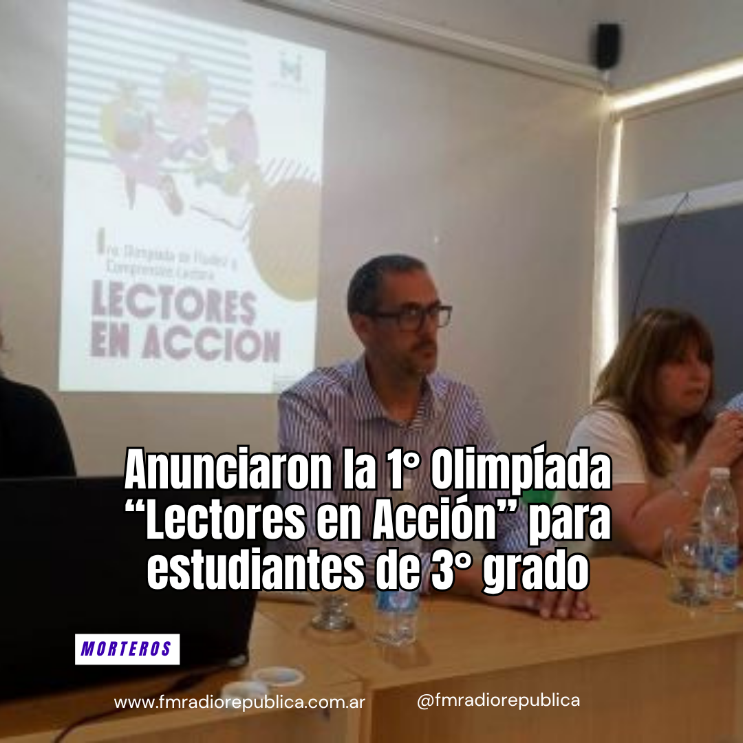 08/10/2025 - En la tarde de este martes se realizó la presentación de la 1° Olimpiada de Fluidez y Comprensión Lectora “Lectores en Acción”, destinada a todos los estudiantes de 3° grado de las escuelas primarias públicas y privadas, urbanas y rurales de Morteros. Se trata de un proyecto impulsado por la Secretaria de Políticas Educativas que tiene como principal objetivo fortalecer las habilidades de lectura en los estudiantes de 3er grado, promoviendo el gusto por la lectura y desarrollando estrategias para mejorar tanto la fluidez como la compresión lectora.