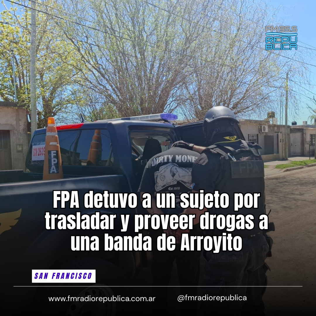 24/09/2025 - En el marco de una investigación dirigida por el Ministerio Público Fiscal, dotaciones de la Fuerza Policial Antinarcotráfico (FPA) realizaron un operativo que culminó con la detención de un sujeto y el secuestro de estupefacientes en la ciudad de San Francisco. El procedimiento se llevó a cabo en una vivienda ubicada en calle Tomasa Sosa al 1500 de barrio San Cayetano. Quedó detenido un hombre de 33 años.
