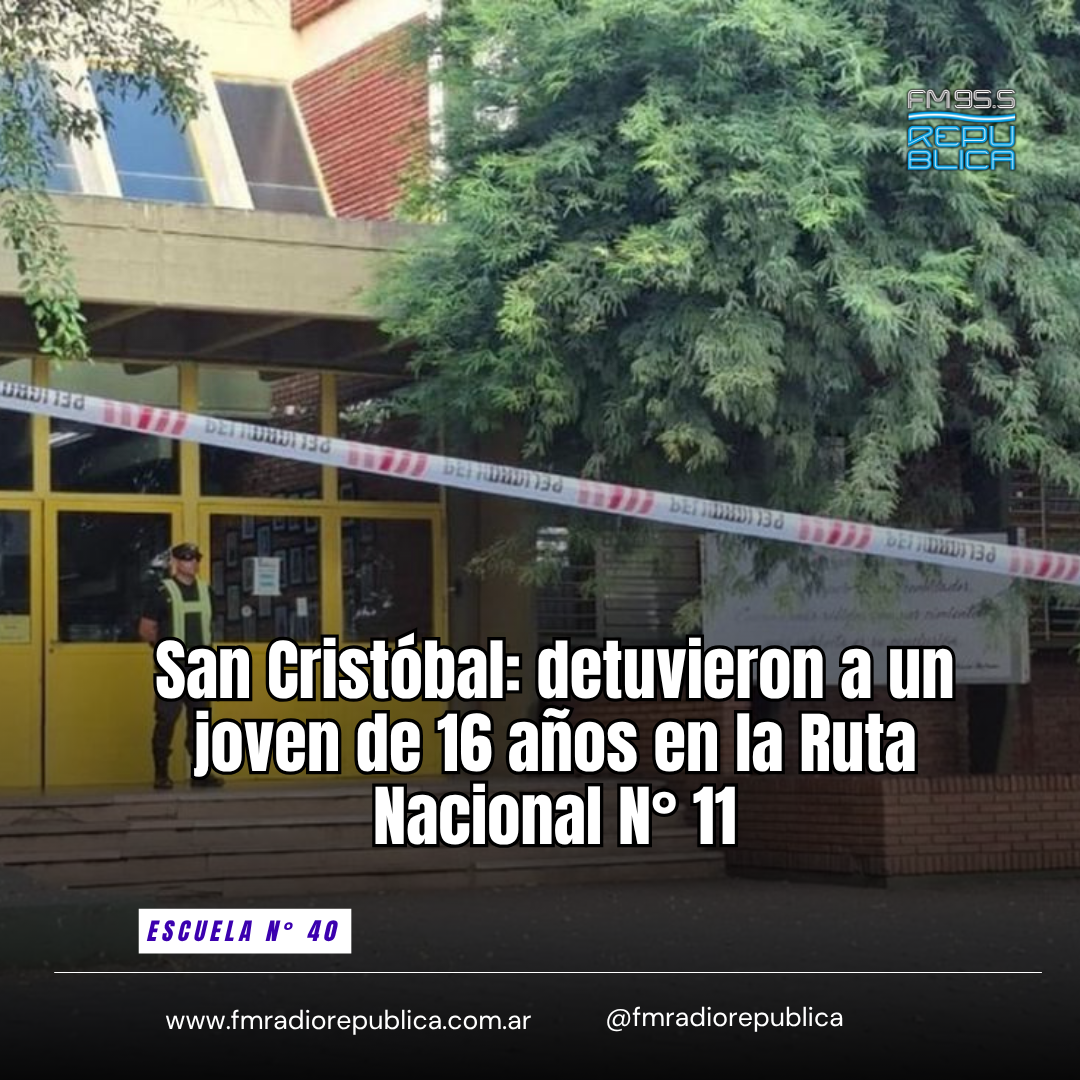 06/04/2026 - En las últimas horas de este lunes se conoció que, efectivos policiales concretaron la aprehensión de un joven de 16 años que estaría involucrado en el brutal ataque ocurrido en la Escuela Nº 40 “Mariano Moreno” de San Cristóbal. El procedimiento se llevó adelante sobre la Ruta Nacional Nº 11, a la altura de la localidad de Nelson, y estaría directamente vinculado al avance de las tareas investigativas que se vienen desarrollando en torno al adolescente señalado como autor del hecho.