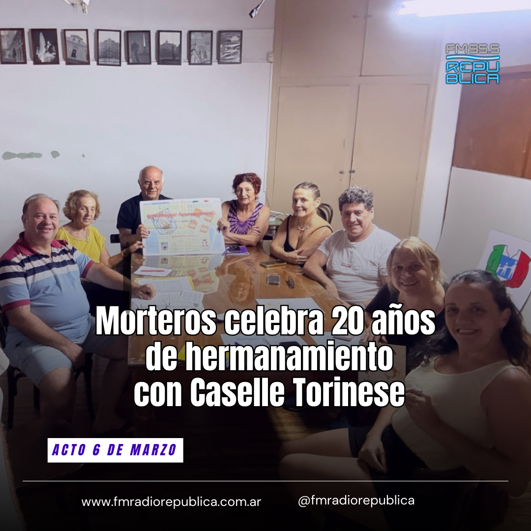 04/03/2026 - La ciudad de Morteros se prepara para vivir un momento histórico con la celebración de los 20 años de hermanamiento con la ciudad italiana de Caselle Torinese. En el marco de este aniversario tan significativo, arribará a la ciudad una delegación oficial encabezada por el síndaco de la localidad italiana, Giuseppe Marsaglia que coincidentemente es el mismo síndaco cuando se firmó el hermanamiento en 2006.