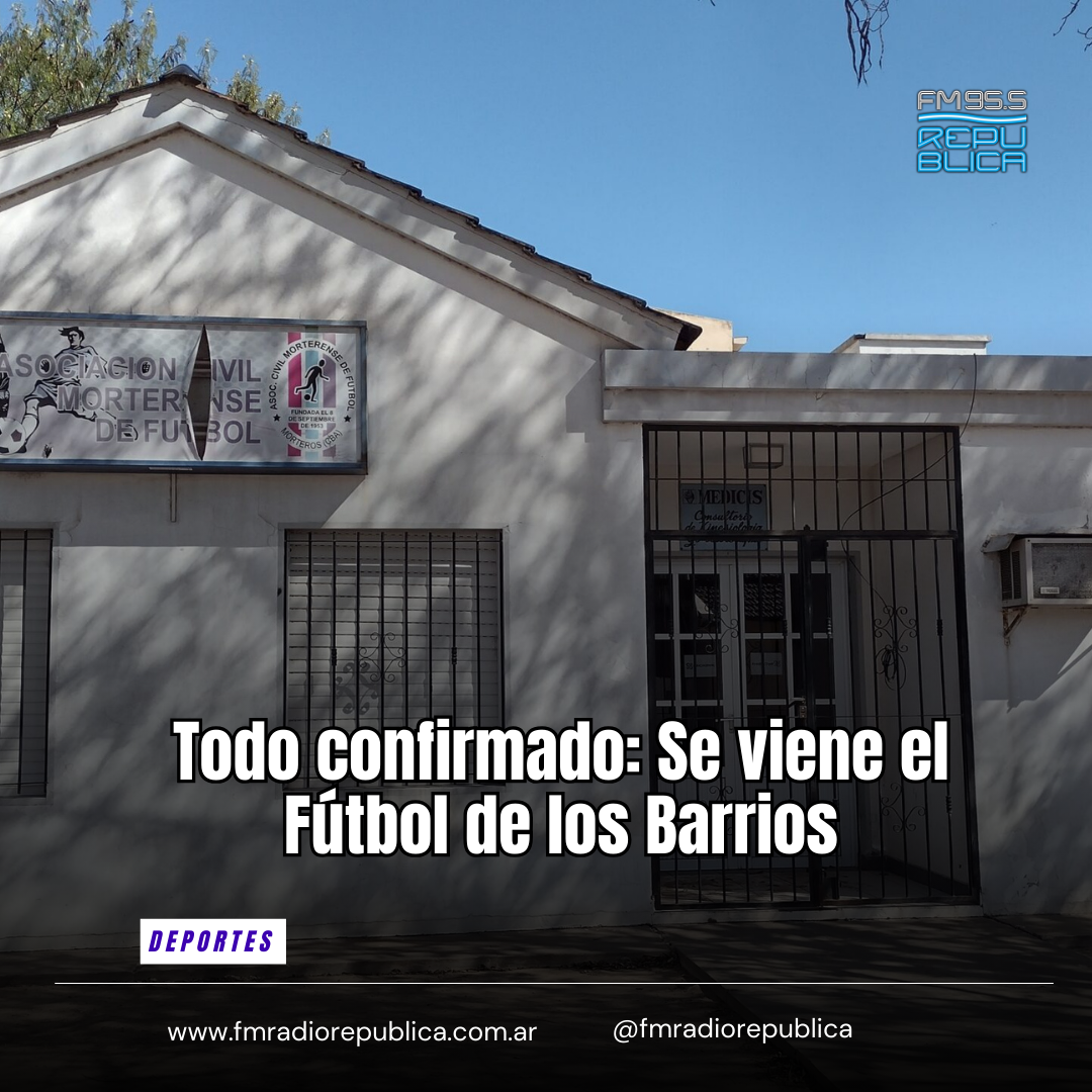 18/03/2026 - Luego de varias reuniones y de idas y vueltas, el Fútbol de los Barrios en el 2026 lo organizará la Liga Morterense de Fútbol y jugarán 11 equipos. Serán ocho elencos de Morteros (Arsenal, Roca, Amelia, Urquiza, Vecinal Este, Central Norte, Sucre y Las Chapas), y tres de la zona (Barrio San Miguel de Suardi, Atlas de Brinkmann y Gorch de Porteña). La semana que viene se recibirán las listas de buena fe y se hará el sorteo. El campeonato comenzará el sábado 4 u 11 de abril.
