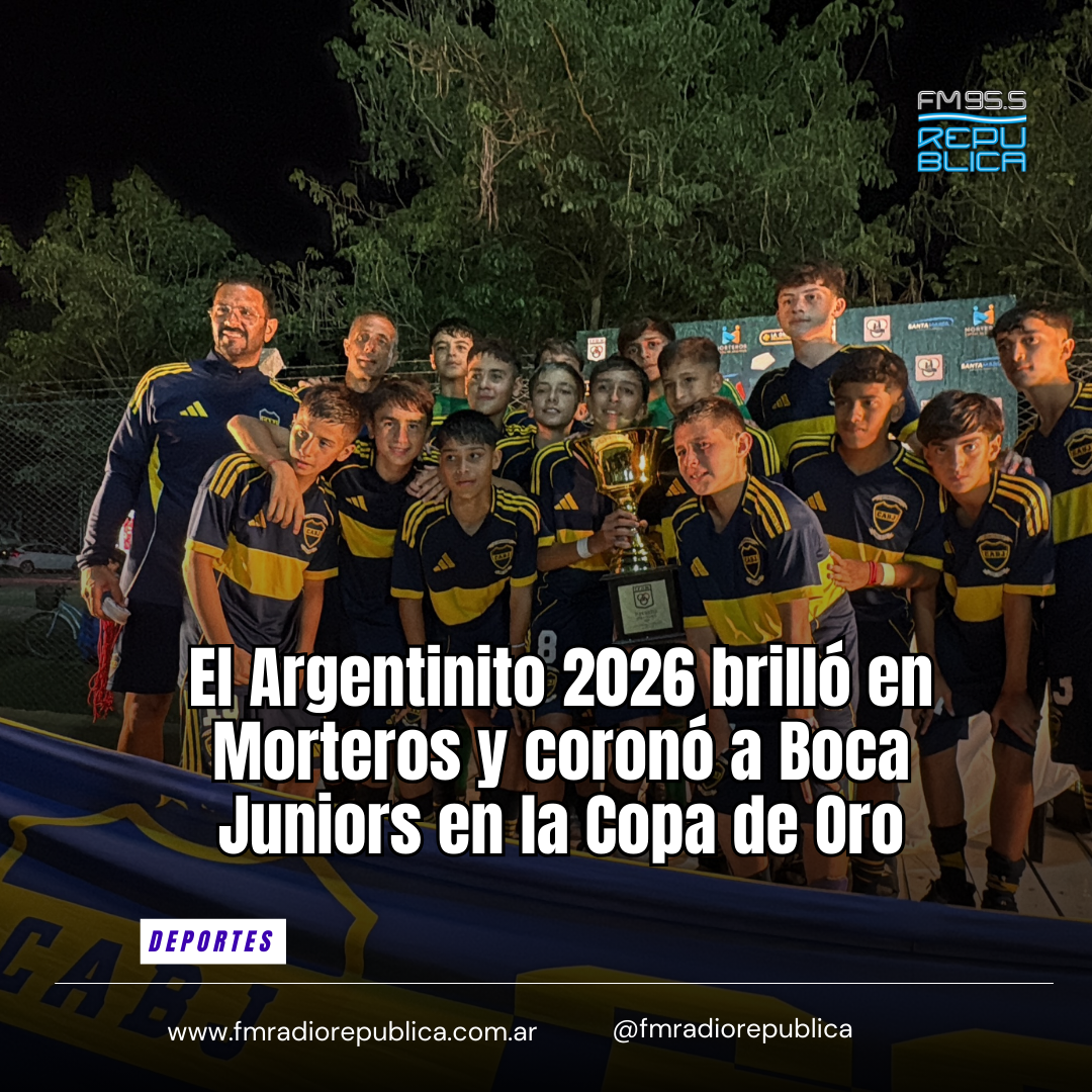 02/03/2026 - La Copa de Oro del Argentinito 2026, en la categoría 2013, tuvo un cierre de alto nivel en Morteros. En una final protagonizada por dos equipos de AFA, Boca Juniors se impuso 1 a 0 ante Rosario Central y se quedó con el título en un partido intenso y muy disputado. El certamen, organizado por Tiro Federal Morteros, volvió a consolidarse como uno de los torneos infantiles más importantes de la región, con una convocatoria masiva de delegaciones y familias que colmaron las instalaciones del club durante todo el fin de semana.