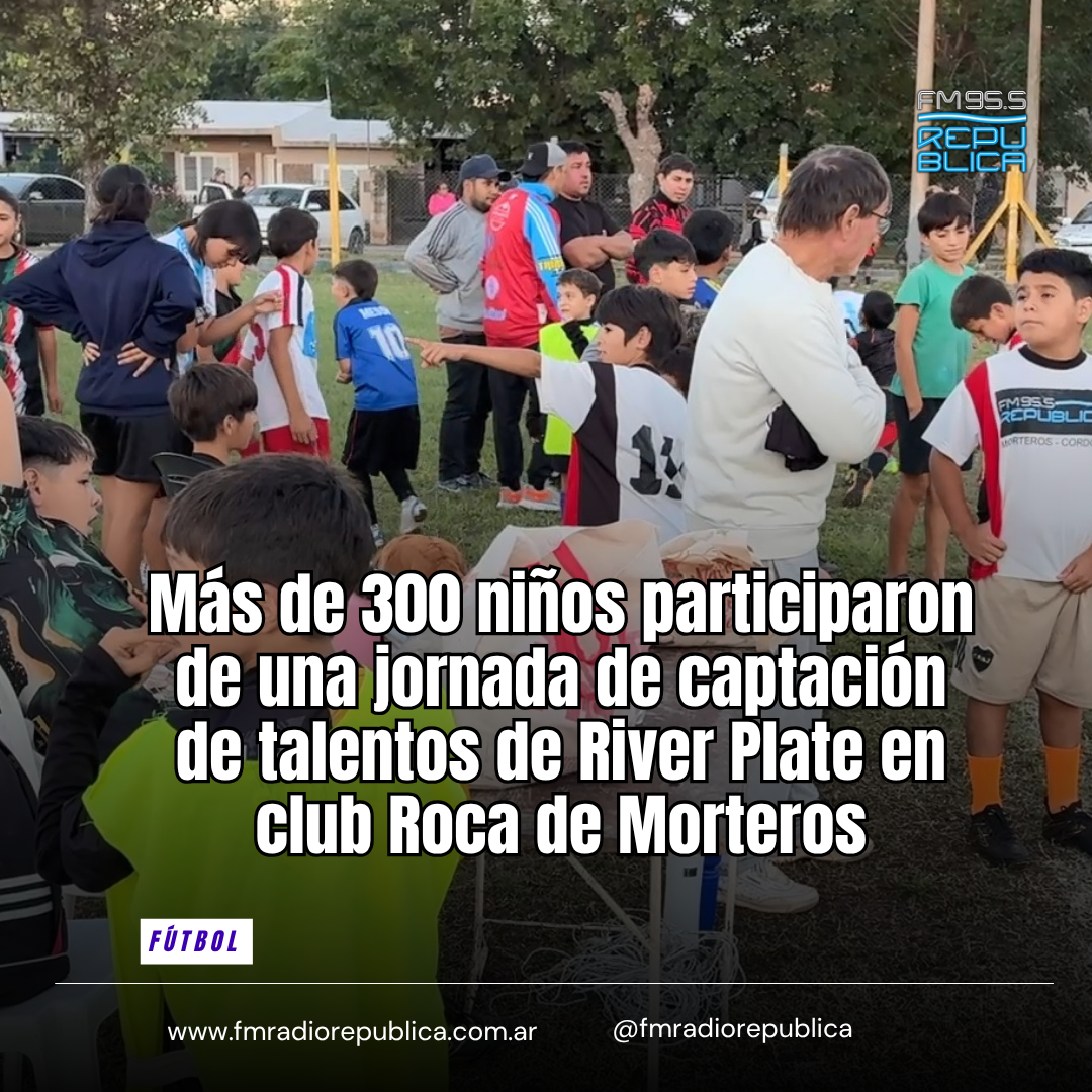09/04/2026 - Este miércoles por la tarde, con una importante convocatoria, se realizó una exitosa jornada de captación de talentos del club “Millonario” en Morteros. Estaba destinada a categorías 2014 a 2019. La actividad reunió a más de 300 niñas y niños de la ciudad y la región, acompañados por sus familias.