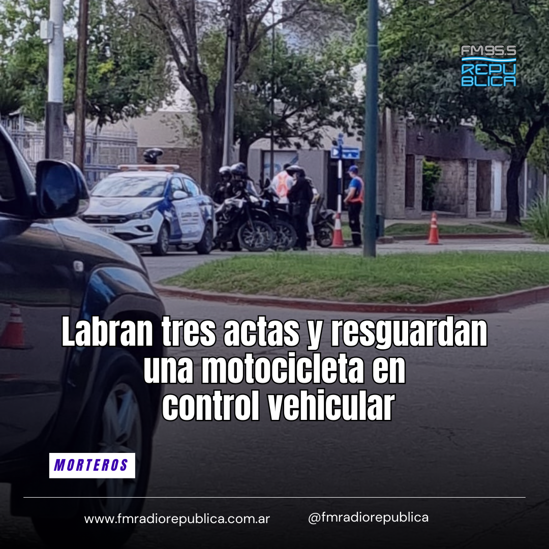 25/02/2026 - En la tarde de este miércoles Inspectoría Municipal junto al SEOM instaló un control vehicular en intersección de Bv. Illia y Pellegrini. En la oportunidad se controlaron 30 automóviles y 65 motocicletas, labrándose tres actas y resguardando una moto por no contar con la documentación reglamentaria.
