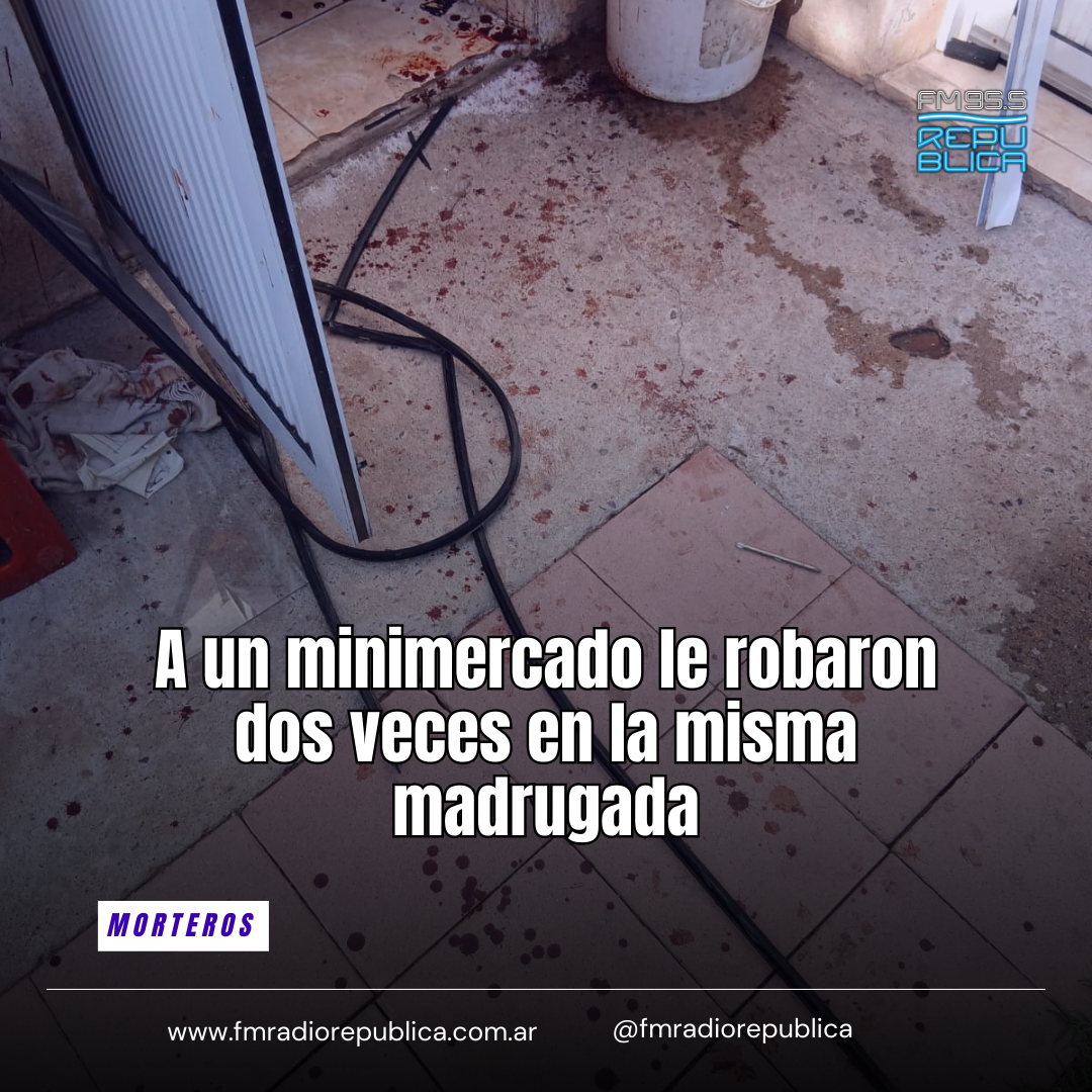 26/02/2026 - A un Minimercado ubicada en calle Avellaneda de Morteros, fue blanco de dos robos en menos de tres horas. Todo quedó registrado en la cámara de seguridad Beto Ortensi, propietario de Minimercado El Gauchito contó a Radio Republica que “en la madrugada del miércoles estaba en mi casa por salir de viaje y me llama la empleada que cuando abrió el local se encontró con que habían entrado a robar por la parte trasera”.