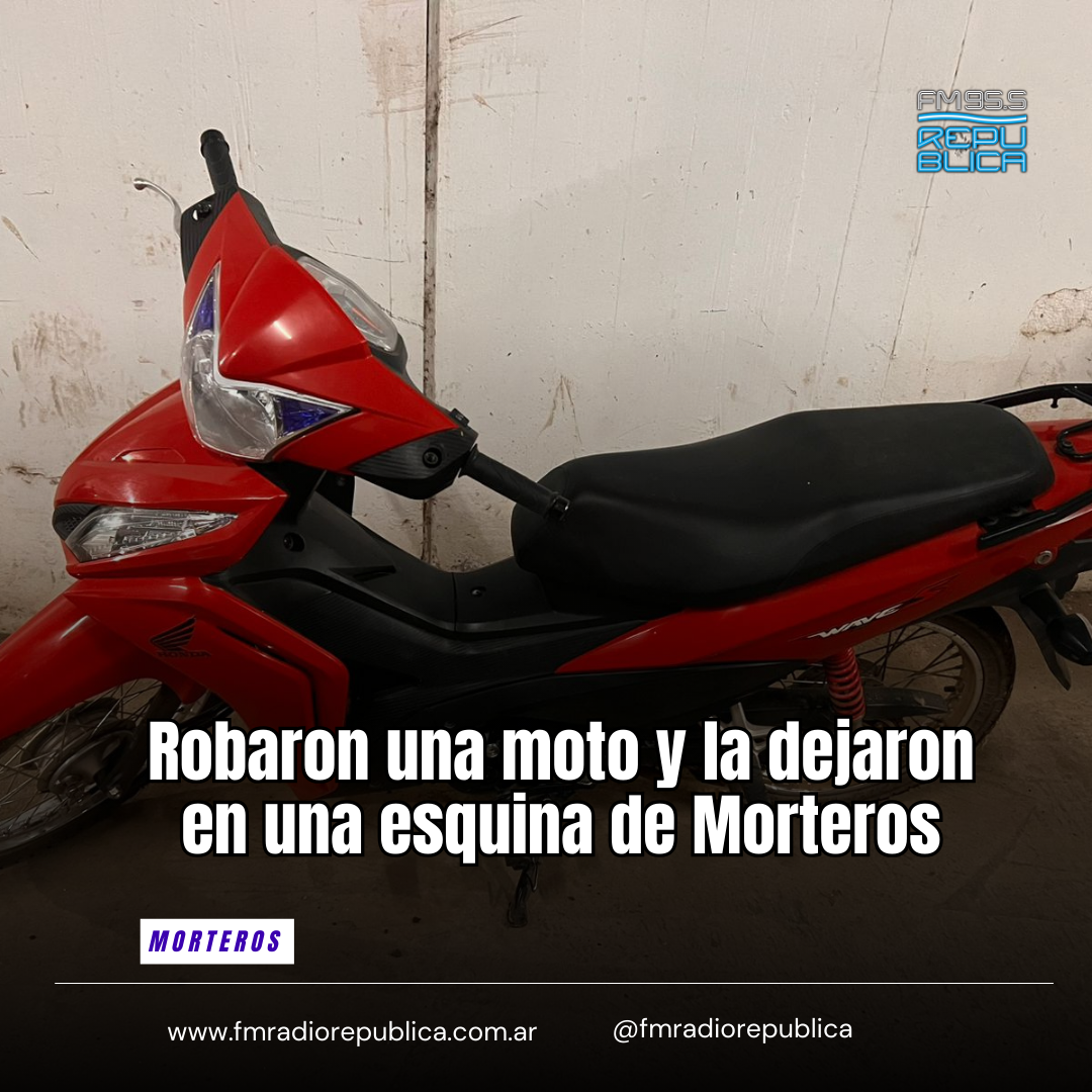 26/02/2026 - En la noche de miércoles, una mujer, mayor de edad, denunció en la Policía de nuestra ciudad la sustracción de una motocicleta. Personal Policial de la Comisaría de Morteros realizaron un operativo para encontrar el rodado y en la intersección de las calles León XIII esq Bv. Eva perón visualizan una motocicleta con características similares a la denunciada sobre la calzada, siendo una motocicleta Honda Wave, color roja. Se procede al secuestro de esta trasladándola hacia la sede policial.