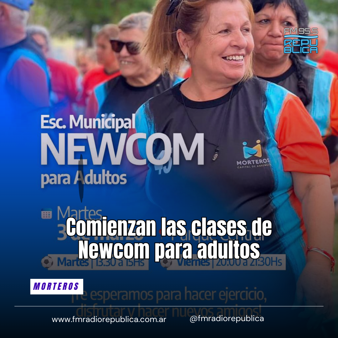 02/03/2026 - La Municipalidad de Morteros Sigue generando espacios para que los adultos mayores se mantengan activos, compartan y disfruten del deporte en Morteros. Una actividad que empieza a practicarse desde hoy es el Newcom. Las clases serán en el Parque Central desde este martes. Los días de prácticas serán martes de 13:30 a 15hs y viernes de 20:00 a 21:30hs. “El Newcom es salud, encuentro y comunidad. Sumate y sé parte de esta propuesta que sigue creciendo”.