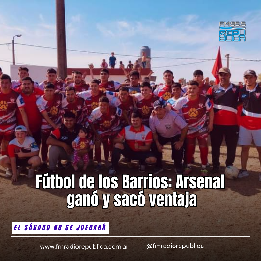 15/09/2025 - El sábado se jugó la última fecha del Fútbol de los Barrios. En Primera, Arsenal ya tenía el 50% y se definió el orden de los clasificados, mientras que en Reserva, el 50% fue para Amelia. El sábado comenzarán los cruces de cuartos de final. Le da beneficio a los clubes que clasificaron entre los cuatro primeros. Definen en su cancha y sus Reservas los siguen en los playoffs. En ambas categorías (cuartos de final). 1°vs 8°, 2° vs 7°, 3° vs 6° y 4° vs 5°. En caso de que ganen un partido cada uno, disputarán penales no existe diferencia de goles.