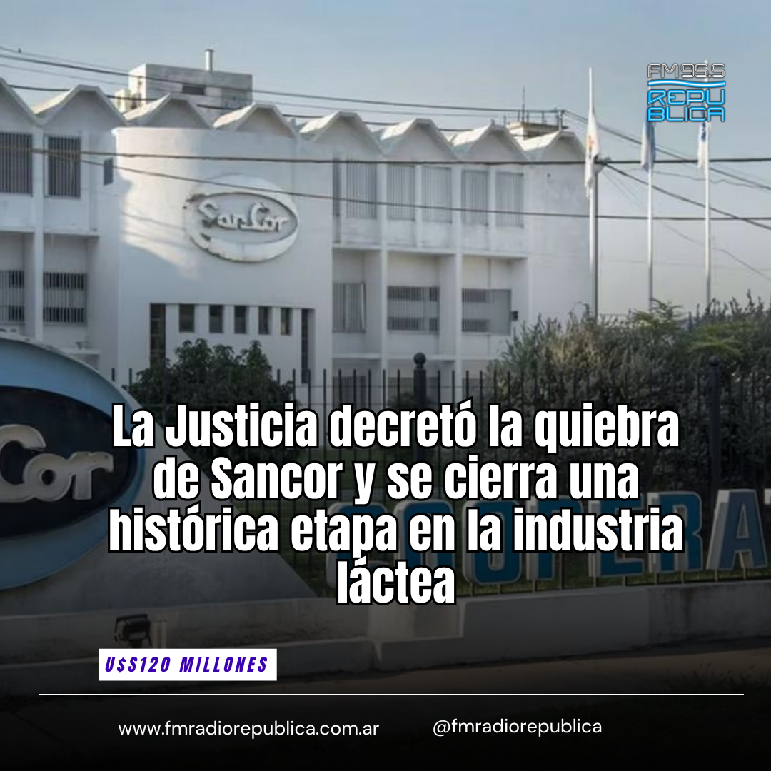 22/04/2026 - La Justicia decretó la quiebra de SanCor, la cooperativa láctea, tras el pedido de la propia firma de que se dicte dicha medida a las vistas de no poder afrontar las deudas económicas. La resolución fue dictada por el juez a cargo del caso, Marcelo Gelcich, perteneciente al Juzgado en lo Civil y Comercial de la 4ta. Nominación de la ciudad santafesina de Rafaela.