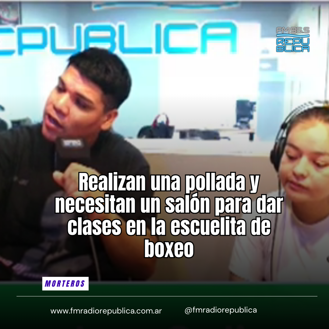 29/01/2026 - Rocío Nuñez y Leo Gutiérrez visitaron los estudios de Radio República, comentaron que de manera informal fueron notificados que tenían que dejar de dar sus clases de boxeo en Club San Jorge, por ello están realizando una pollada para éste domingo 1 de febrero en el Salón de Sucre, para colaborar 3562437852 o al 3562546149. La misma se realiza con la finalidad de juntar dinero para poder alquilar un local donde puedan continuar con las clases en la escuelita de box, hoy cuentan con 30 alumnos.