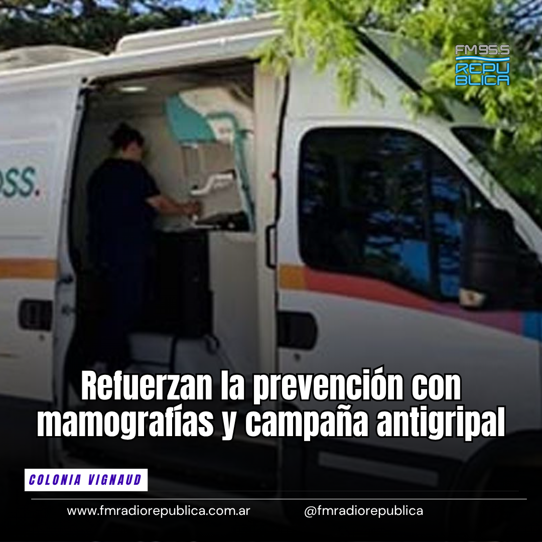 07/04/2026 - La municipalidad de Colonia Vignaud continúa desarrollando acciones vinculadas a la salud y la comunidad, entre las que se destacan la convocatoria a realizar mamografías, la campaña de vacunación antigripal y la realización de talleres para niños y niñas. En materia de prevención, se convoca a mujeres mayores de 40 años que no se hayan realizado una mamografía en los últimos 12 meses a aprovechar el mamógrafo móvil instalado en la ciudad de Brinkmann, disponible hasta el 10 de abril.