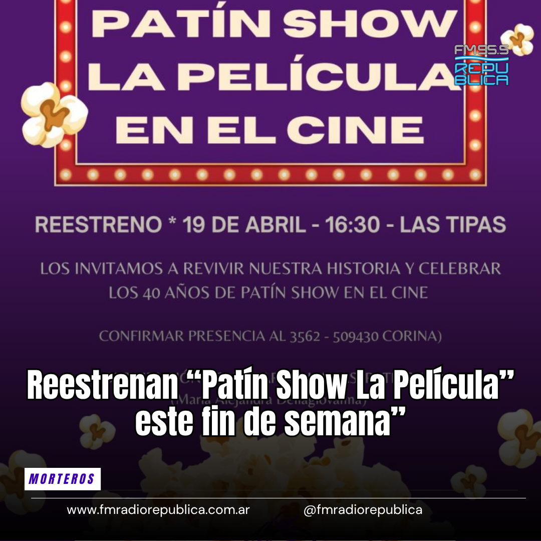 16/04/2026 - Al celebrar los 40 años de historia, Patín Show de 9 de Julio de Morteros reestrena “La Película” en el cine. Se trata de un documental-musical que refleja de manera atractiva y emocionante la historia de un gran sueño hecho realidad. Un sueño que ha crecido desde 1986, convirtiéndose en una escuela de patinaje artístico de calidad y excelencia, logrando espectáculos de gran producción, que son posibles gracias al equipo de trabajo.