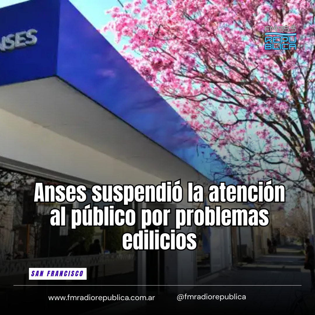 14/01/2026 - La sede de la Administración Nacional de la Seguridad Social (Anses) ubicada en calle J.L. de Cabrera al 1200 de San Francisco no atendió al público este martes debido al desplome de una parte del techo del edificio, lo que generó serios daños en la infraestructura y potencial peligro para empleados y vecinos. Según la información recabada, el techo de la oficina quedó destruido con cables colgando, situación que motivó la decisión de suspender la atención presencial por tiempo indefinido hasta que se realicen las reparaciones necesarias.
