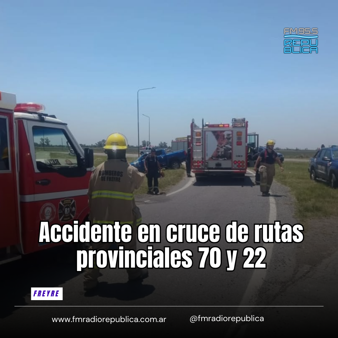 13/01/2026 - En la tarde de este martes se produjo un accidente entre dos vehículos en el cruce de Ruta Provincial 70 y 22, con un saldo de importantes daños materiales El choque ocurrió pasado el mediodía aproximadamente a unos 15 km al este de la localidad de Freyre, protagonizado por una camioneta Ford EcoSport, con tres ocupantes, y una camioneta Volkswagen Saveiro, con un ocupante mayor de edad.