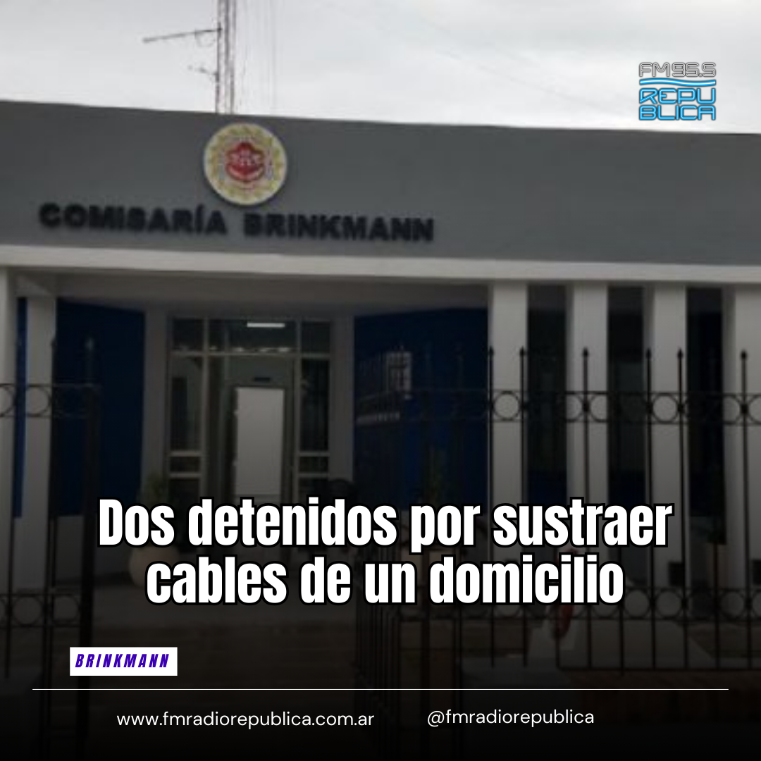 13/01/2026 - En la tarde del lunes una mujer de 37 años de edad domiciliada en calle San José de Brinkmann, denunció la sustracción de cables de una instalación eléctrica. Personal policial se presentó en el lugar, procediendo al control y aprehensión de dos jóvenes que circulaban en una bicicleta con un rollo de cable e intentaron darse a la fuga. Los detenidos son dos jóvenes de 27 y 29 años, ambos con antecedentes delictuales. Fueron trasladados a la Comisaria local, junto a un rollo de cable que se secuestró en poder de los detenidos