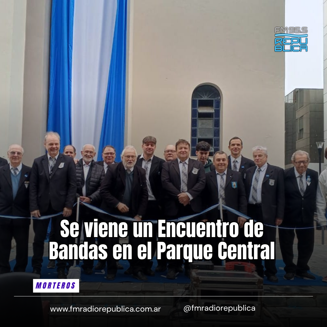 14/10/2025 - El próximo domingo desde las 17:00, la música será protagonista en el Parque Central, donde se llevará a cabo un Encuentro de Bandas para compartir y disfrutar de la cultura y el talento de músicos locales y de la región. Participarán del Encuentro la Banda Municipal "Roberto Mansilla" de Morteros, Banda Infanto Juvenil de la Municipalidad de San Guillermo, Banda Juvenil del Centro Cultural de la Municipalidad de Morteros y la Orquesta Banda Municipal “Maestro Selvino Ortolano” de Suardi provincia de Santa Fe, quienes ofrecerán un repertorio variado de música popular, moderna y clásica, pensado para todo tipo de público.