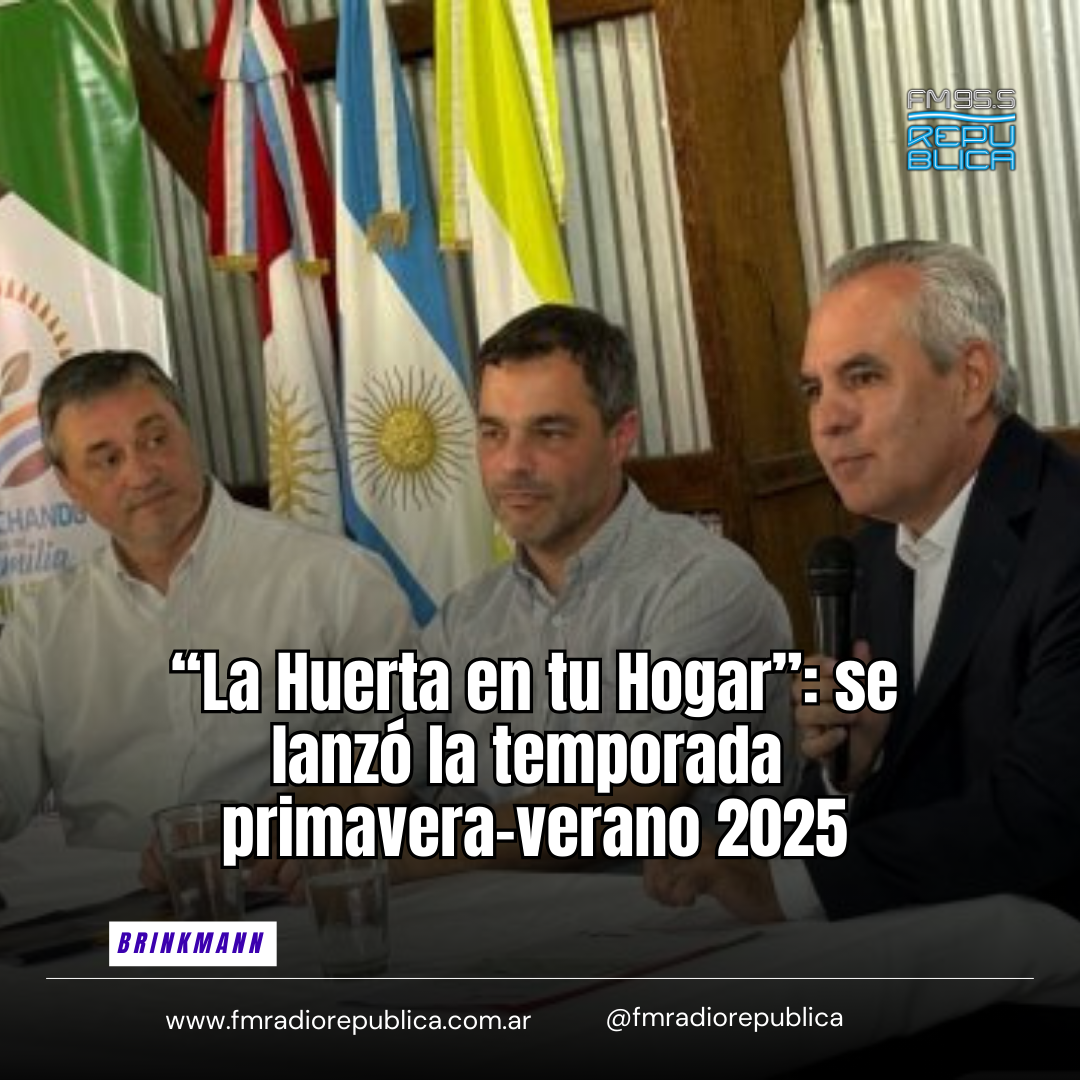 22/09/2025 - El Ministerio de Agricultura y Ganadería, a través de la Subsecretaría de Agricultura Familiar y de la Dirección de Agencias Zonales, lanzó desde Brinkmann la temporada primavera-verano 2022 del Programa “La Huerta en tu Hogar” El acto estuvo encabezado por el Director de Desarrollo Asociativo del Ministerio, Gabriel Rodríguez, el Legislador Departamental Gustavo Tévez y el Intendente Mauricio Actis.