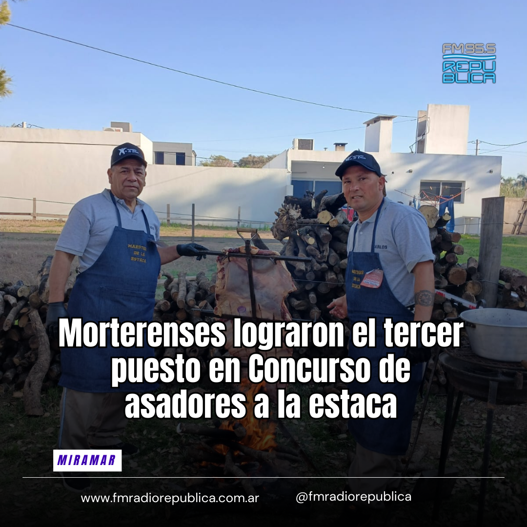 16/09/2025 - Hugo Mendoza y Carlos Benítez lograron el 3° puesto en el primer concurso de asadores a la estaca que se llevó a cabo el domingo 14 de septiembre en Miramar de Ansenuza. Mendoza participó junto a su yerno y si bien era exigencia anotarse como asador y fogonero “los dos hicimos de fogoneros y los dos hicimos de asadores, opinábamos los dos sobre el fuego, la carne, todo. Trabajamos muy bien y estamos muy contentos”, dijo. Brindando más detalles de la jornada, explicó que “el fuego lo prendimos a las 8:30 de la mañana y después empezamos a armar el stand entre los dos y quedó lindo, a la gente que nos visitaba le gustó mucho”.