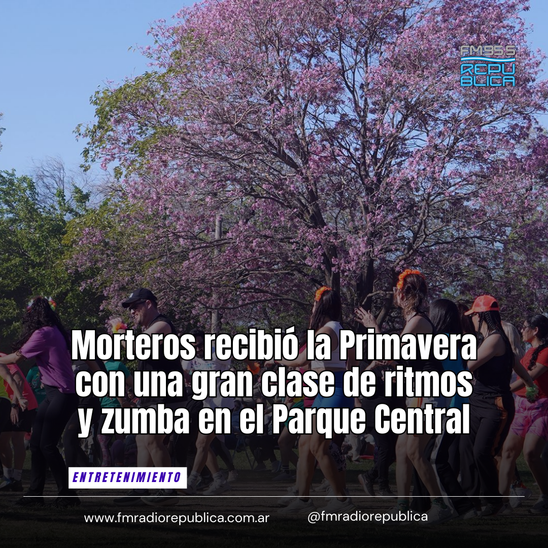 23/09/2025 - El Parque Central, en el escenario del Lago Norte, fue el punto de encuentro elegido para celebrar la llegada de la Primavera con un evento central que reunió a más de 1000 personas en una jornada a pura música, baile y energía. La propuesta principal fue la Clase Compartida de Ritmos y Zumba, organizada por la Municipalidad de Morteros junto a la instructora del Taller de Ritmos Latinos del Centro Cultural Municipal, Lourdes “Luli” Cortez, en el marco del festejo de esta colorida estación.