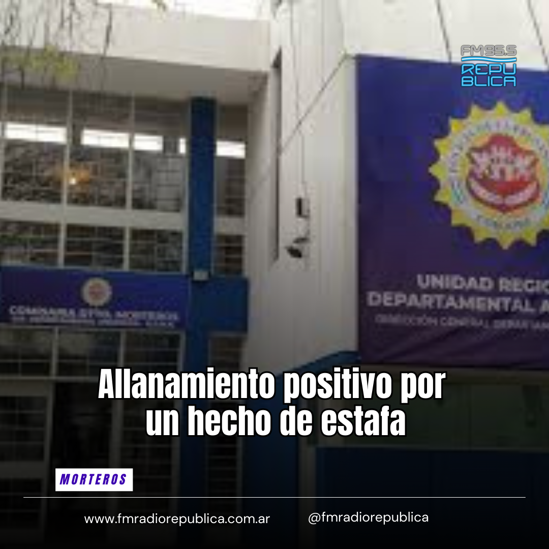 29/09/2025 - El viernes en horas de la tarde, personal de la División de Investigaciones junto al personal de la Comisaria de Morteros, dieron cumplimiento a órdenes de allanamientos para tres domicilios por un hecho de estafa Los tres procedimientos, ordenados por la Fiscalía de Instrucción Morteros, arrojaron resultado positivo, logrando el secuestro de cinco dispositivos de telefonía celular con material de interés para la causa.
