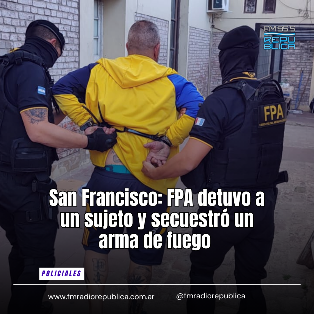 28/09/2025 - En el marco del Plan Estratégico dispuesto por el Ministerio Público Fiscal, efectivos de la Compañía de Intervenciones Especiales de la Fuerza Policial Antinarcotráfico llevaron a cabo intensos controles preventivos en el departamento San Justo y detuvieron a un sujeto mayor de edad en la ciudad de San Francisco. Durante un dispositivo sobre calle Chaco al 1000 de barrio Parque, los oficiales de la FPA controlaron a un motociclista de 48 años y le incautaron un revólver calibre 22. Automáticamente quedó aprehendido.
