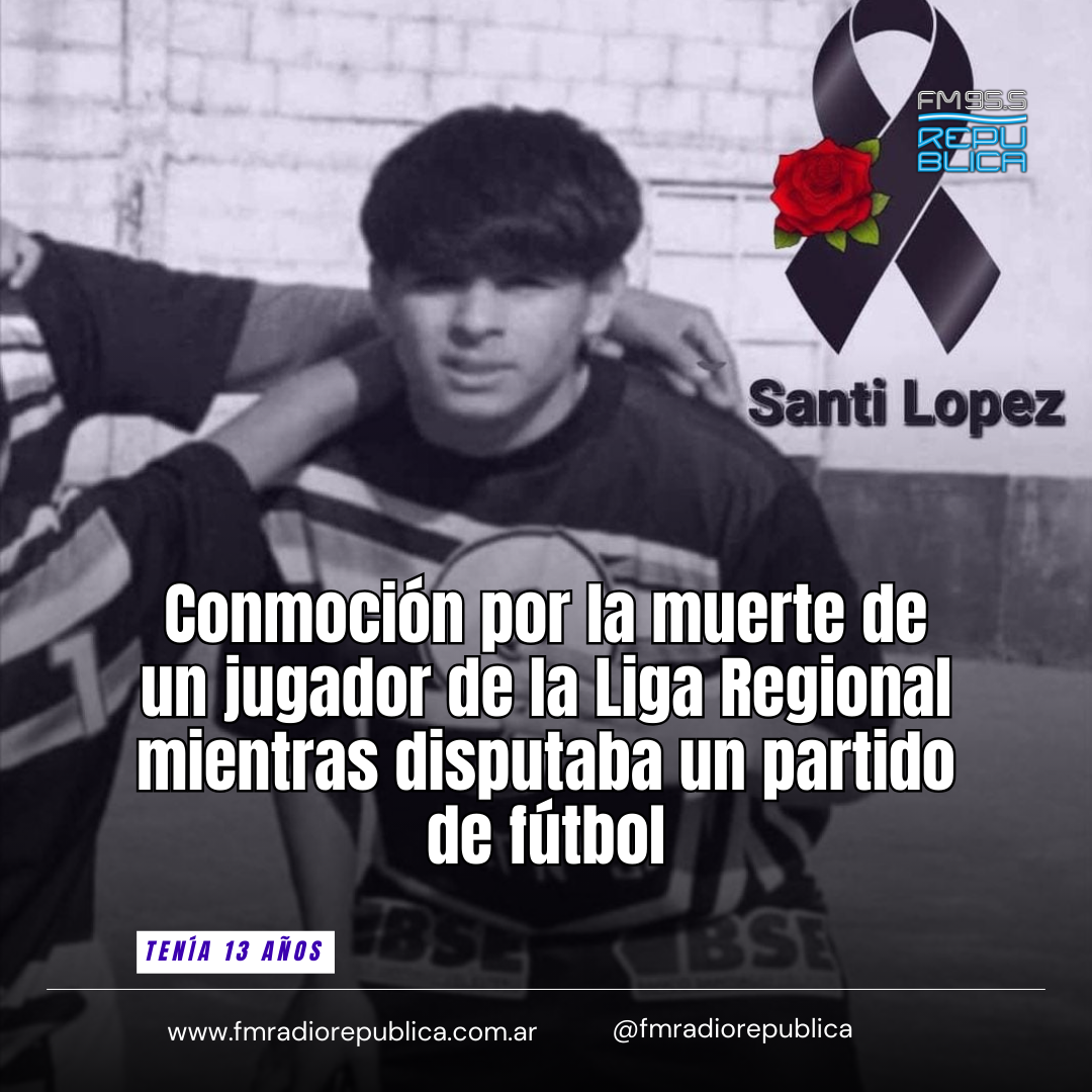 28/09/2025 - El departamento San Justo está de luto por el fallecimiento de Santino López, un adolescente que se habría descompensado mientras participada de un partido de fútbol con su equipo de Sportivo Belnearia. El joven de 13 años recientemente había sido convocado para integrar la Selección Sub 13 de San Francisco para ser parte del conjunto que jugaría un torneo en Río Tercero.