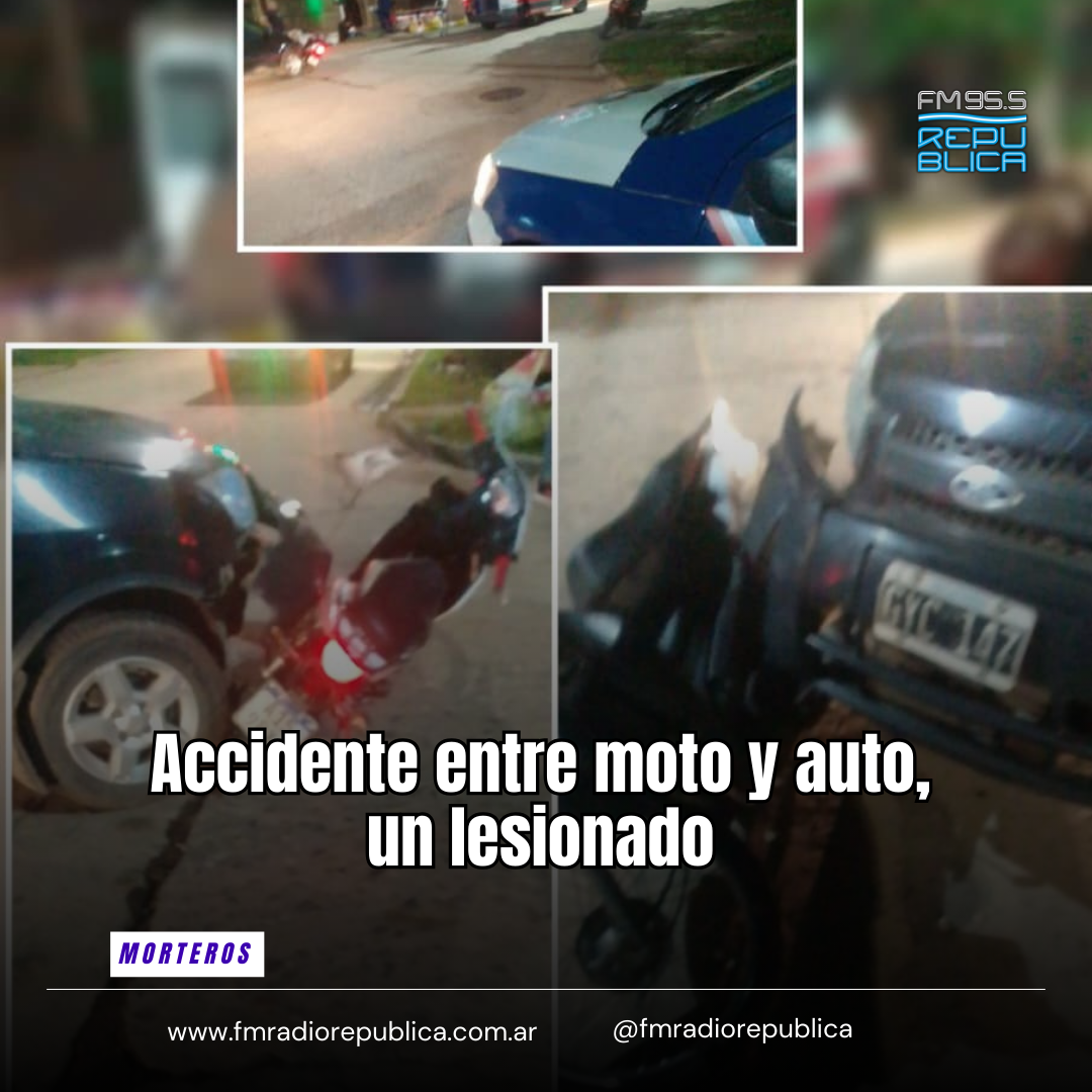 07/12/2025 - En la madrugada de este domingo (3:30 hs) se produjo un choque entre una moto y un auto, donde el conductor del rodado menor resultó con lesiones. Según se informó desde el centro de monitoreo municipal, el accidente ocurrió en calle Alberdi y Marconi donde dos jóvenes que se conducían en una motocicleta colisionaron con un automóvil que era guiado por una mujer.