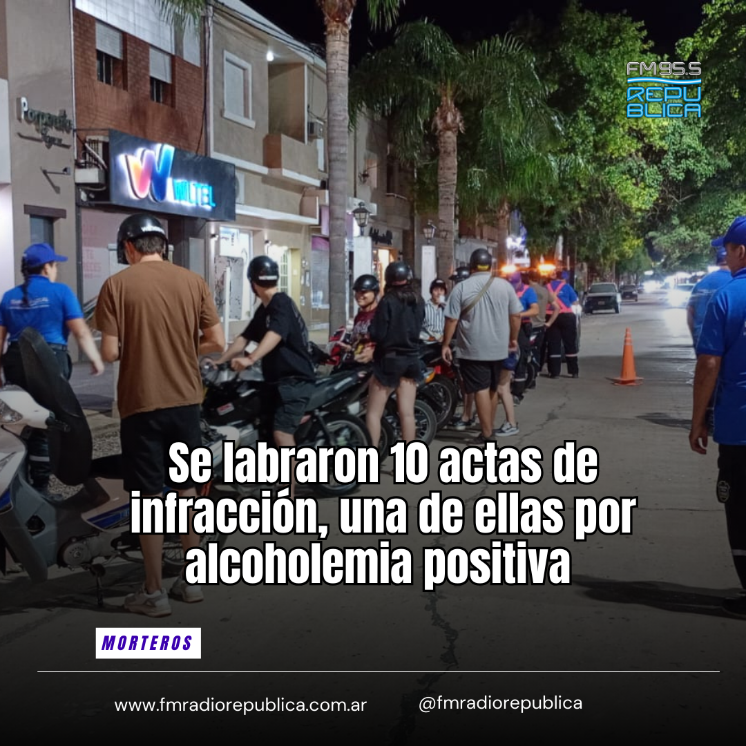 25/01/2026 - En la madrugada del domingo, entre la 01:00 y 02:40 se llevó adelante un nuevo operativo de control vehicular de documentación y alcoholemia. El puesto estuvo ubicado sobre Bv. 25 de mayo y calle Alberdi. Trabajó personal de Inspectoría municipal y seguridad ciudadana (Guardia Local). En total se controlaron 64 motocicletas y 15 automóviles.
