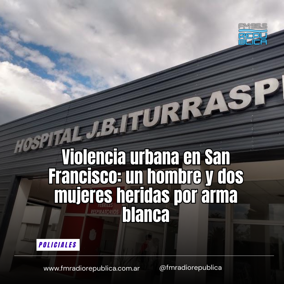 25/01/2026 - San Francisco vivió una jornada marcada por hechos de violencia urbana que dejaron como saldo tres personas heridas por armas blancas. El caso más grave se registró en Barrio Palmares, donde un hombre de 51 años fue encontrado con múltiples puñaladas en el pecho y la cabeza. Por la complejidad de su cuadro, permanece internado bajo pronóstico reservado en el Hospital Iturraspe.